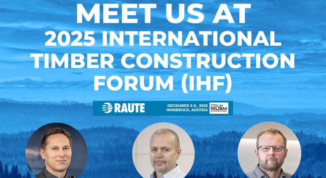 Raute nimmt am International Timber Construction Forum (IHF) 2025 in Innsbruck, Österreich, teil, um seine KI-gestützten Analysegeräte und automatisierten Reparaturlösungen für Massivholz- und Massivholzplatten vorzustellen – Innovationen, die Qualität, Effizienz und Nachhaltigkeit im modernen Holzbau verbessern.